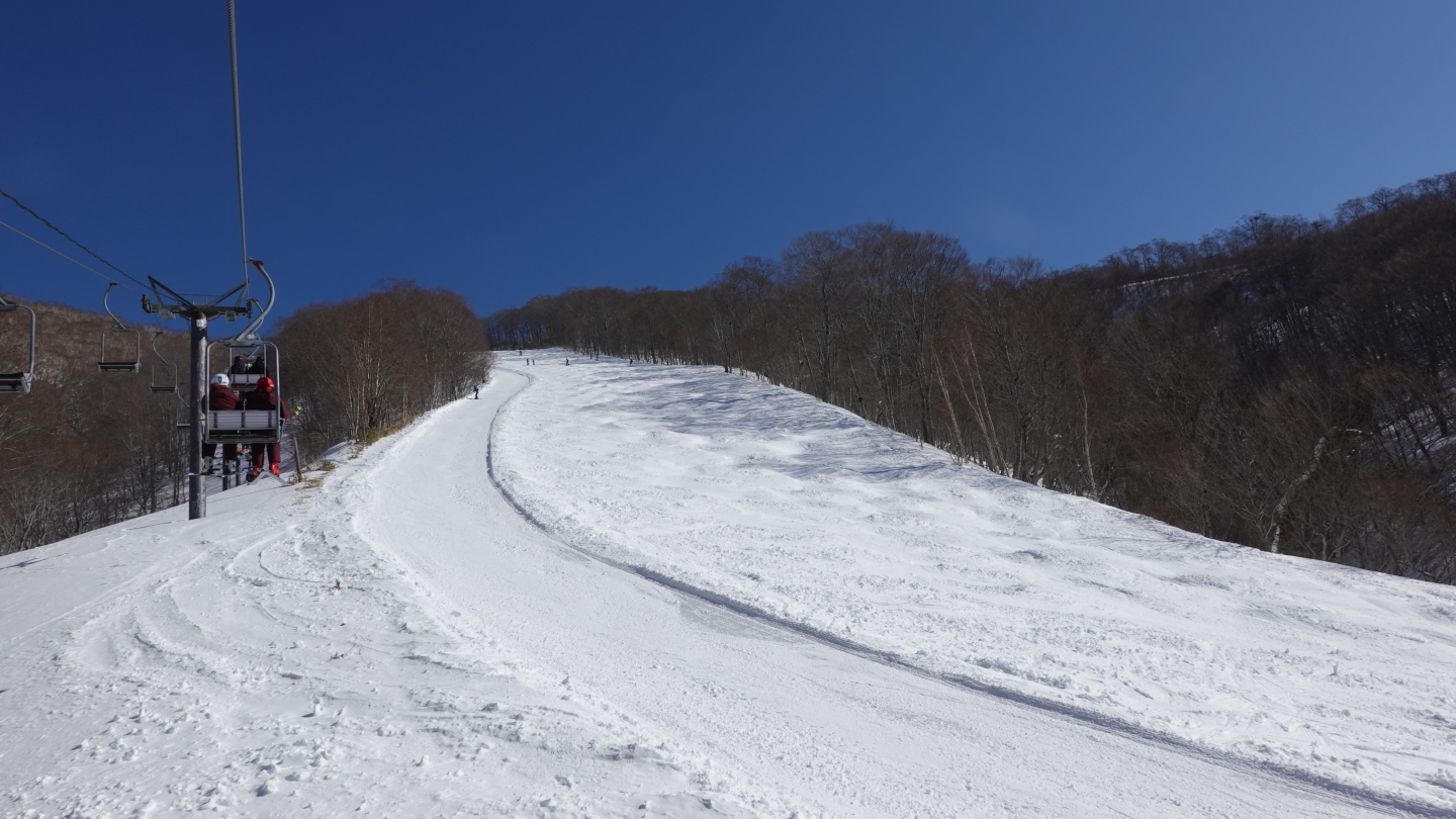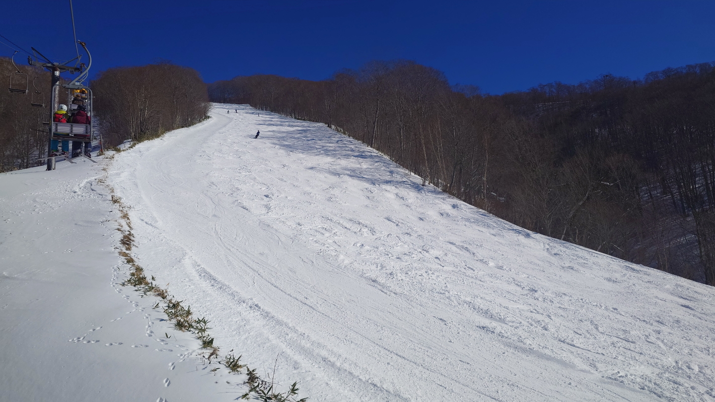 午後のぶなは日差したっぷり.平日はライン待ちすることなく滑り放題です.