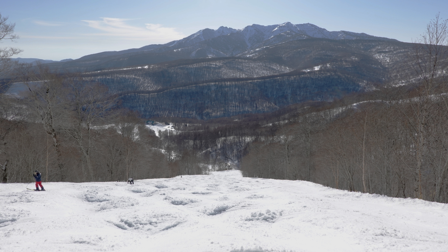 朝のゲレンデは西山エリアでもジャガイモが各所で発生.武尊山を眺めながら滑るとちの木コースはとても気持ちいいところです.