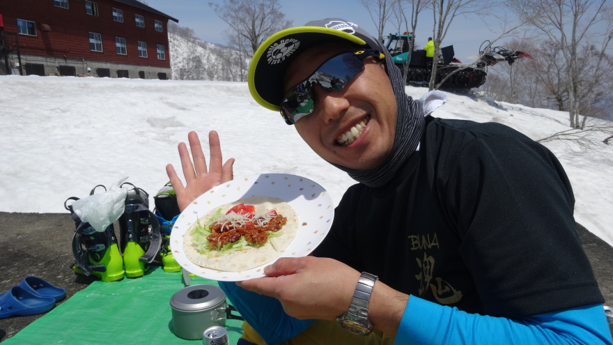 OUJIさんお手製のタコスを振舞ってくれました。本日はテキーラも持参。