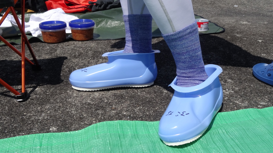 春のかぐら用の便利グッズ「お風呂ブーツ」を ぶちさんが寄贈してくれました。OUJIさんも同じことを考えていて偶然に2足分揃いました。