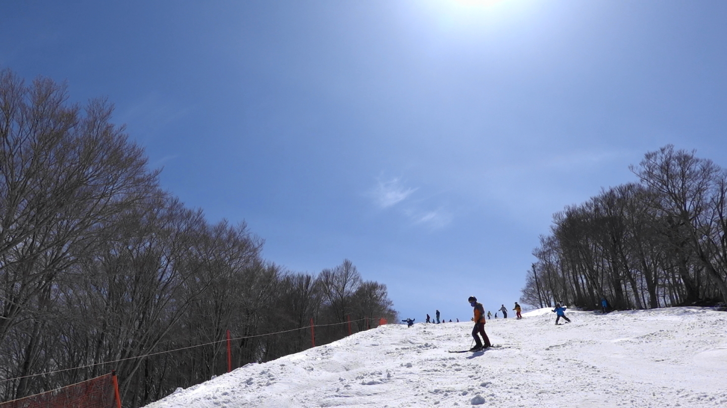 湯沢側に造成したBライン(B定食、ゲート付き).雄大な景色をバックに滑ることが出来て気持ちいい!