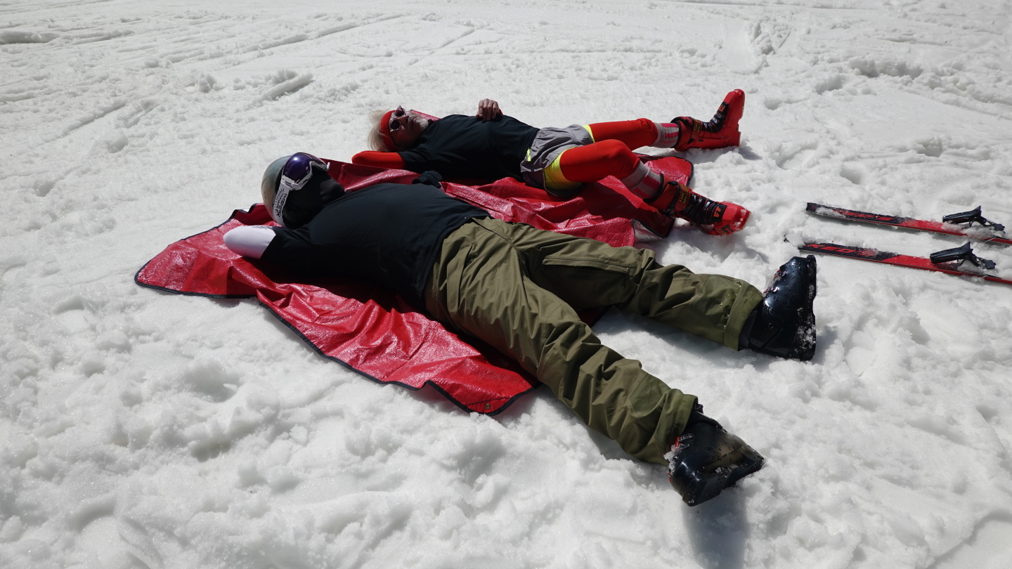 春の楽しいコブを攻めている時はアドレナリン全開で疲れを感じませんが、一息つくと疲労の蓄積を感じます.ぶな下でお昼寝をするメンバー.