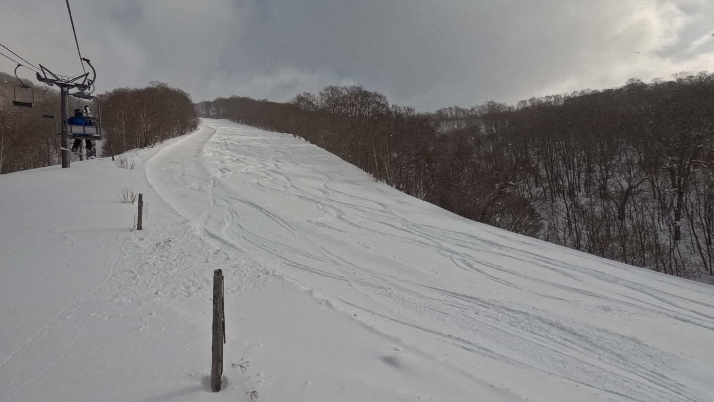 ミルキーからは、エキスパート上部が望めます.斜面にクラックが入っているのが良く分かります.