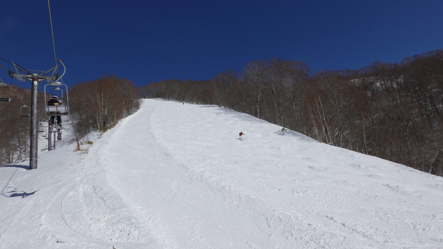 ぶなは全面コブに.気温の上がり方が鈍かったのもあり、雪の緩み方はゆっくり.久しぶりに最終乗車近くまで楽しみました.