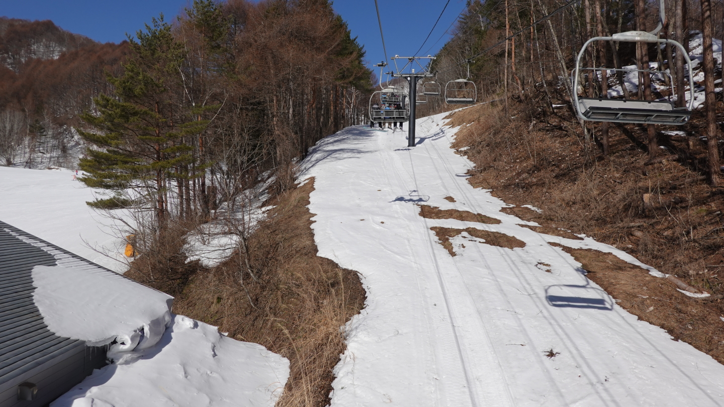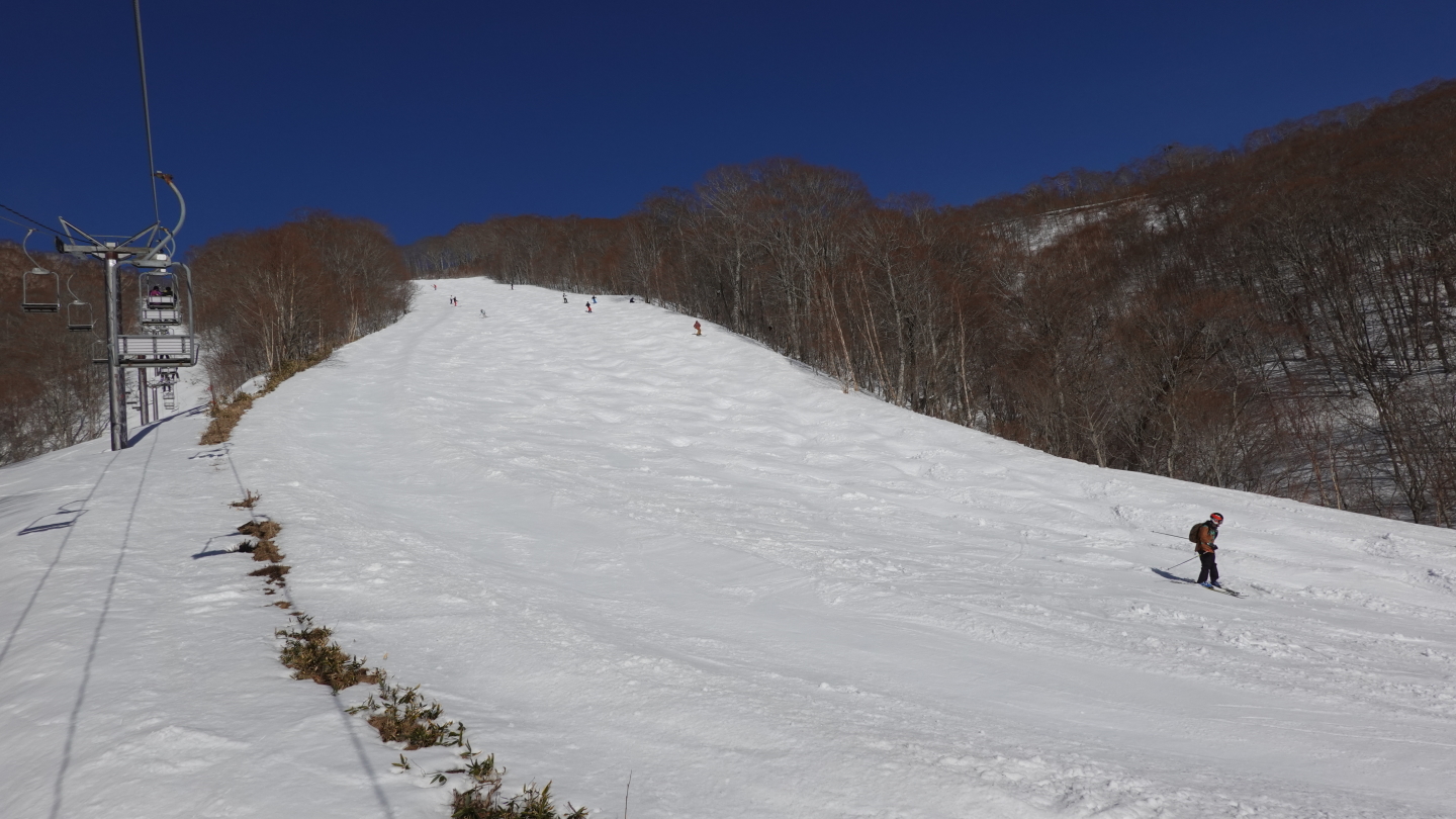 3クワを乗り出した付近、春のような積雪量.リフト係員さんによると雪は降っていないようで、この先が心配です.